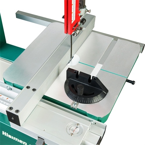 The profiled rail positively engages with the fence bracket, giving a secure positive fit.  There is adjustment in the fence to get it parallel to the mitre slot creating accuracy and repeatability. Hinged wheel covers and micro-adjustable blade guides round out the features on this machine that is an excellent choice for a workshop that requires a high quality build, accuracy and adjustability in a small footprint.