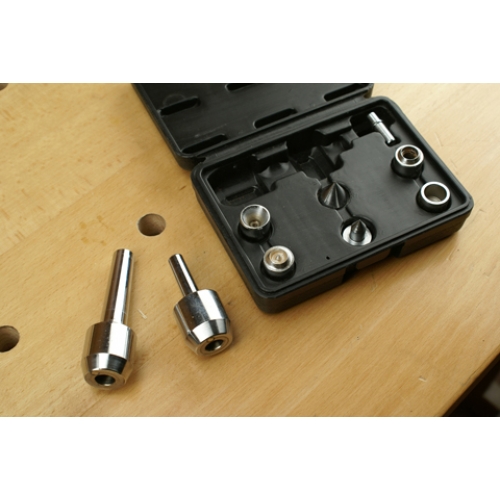 These high quality live centers feature double bearing construction and long life. A rare earth magnet set into the body securely holds the interchangeable centers in place.Set includes: 9/16" cup center, 5/8" to 1/4" tapered cup, 3/4" cone center,7/16" extended cone center, 1/2" cup center with point, 1/2" cup center with removable 5/16" guide pin, Form fitted case.