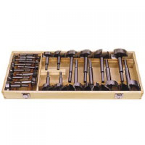 This combination set is every woodworker’s dream. It contains 6 forstner style bits ranging from 1/4" to 7/8" in 1/8" increments. It also has 18 saw tooth bits ranging from 1" to 3-1/8" in 1/8" increments. Supplied in an attractive wooden box for storage