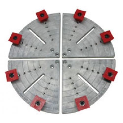 The adjustable jaws allow you to re-chuck bowls for finishing the bottom or do light clean-up work on the foot of the bowl. To mount the bowl, the bowl is reversed and held by the rim, either internal or external, with 8 unique soft plastic stoppers which are mounted on the face of the jaws.